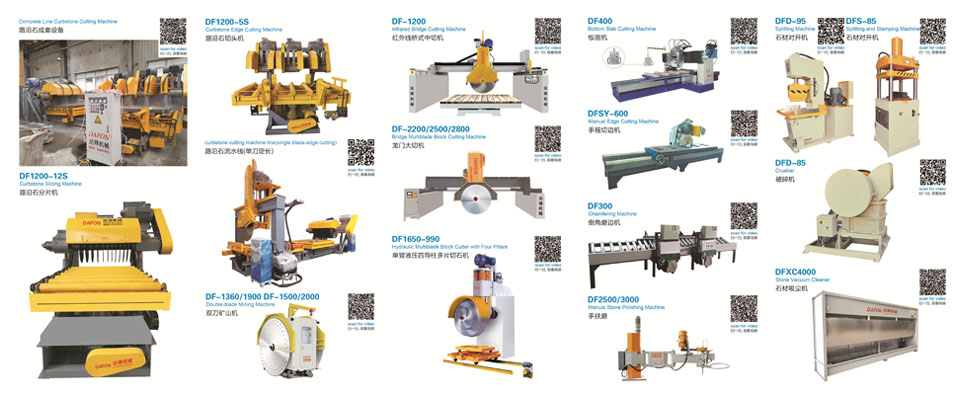 泉州達鋒機械有限公司坐落于世界石都一一中國 · 水頭,是一家集研發(fā)設(shè)計、生產(chǎn)制造、銷售服務(wù)于一體的專業(yè)石材建材機械綜合服務(wù)型企業(yè)。產(chǎn)品涵蓋自動路沿石流水線設(shè)備、石材切割和磨光設(shè)備、自保溫砌塊設(shè)備等工業(yè)智能機械設(shè)備及金剛石工具輔料等。本著精益求精的原則,憑借不斷積累的制造技術(shù)和經(jīng)驗,達鋒機械逐漸成為石材機械設(shè)備生產(chǎn)制造業(yè)的領(lǐng)頭羊。